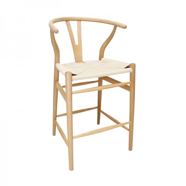 Banco fabricado en madera de alta calidad con asiento tapizado en tejido natural