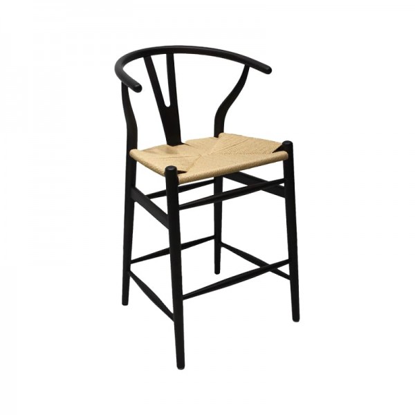 Banco fabricado en madera de alta calidad con asiento tapizado en tejido natural