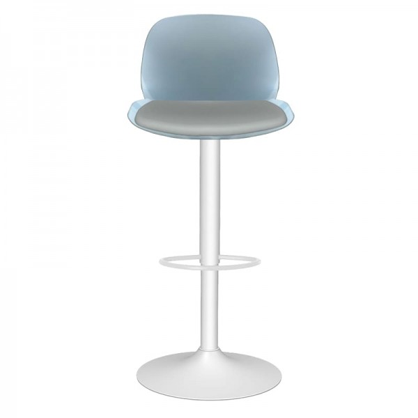 Base redonda en lámina de acero calibre 18, elevación por medio de un pistón neumático. respaldo y asiento de una sola pieza de polipropileno.