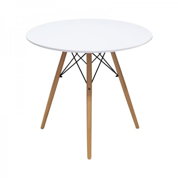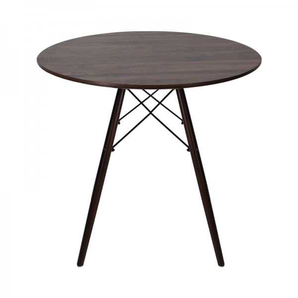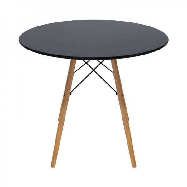 Mesa redonda ideal para 2 a 4 personas, estructura sólida de madera maciza y tirantes de metal negro, cubierta de polipropileno.