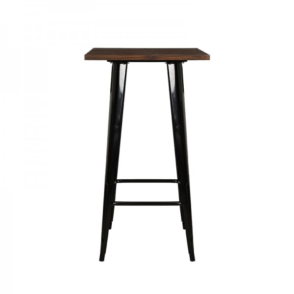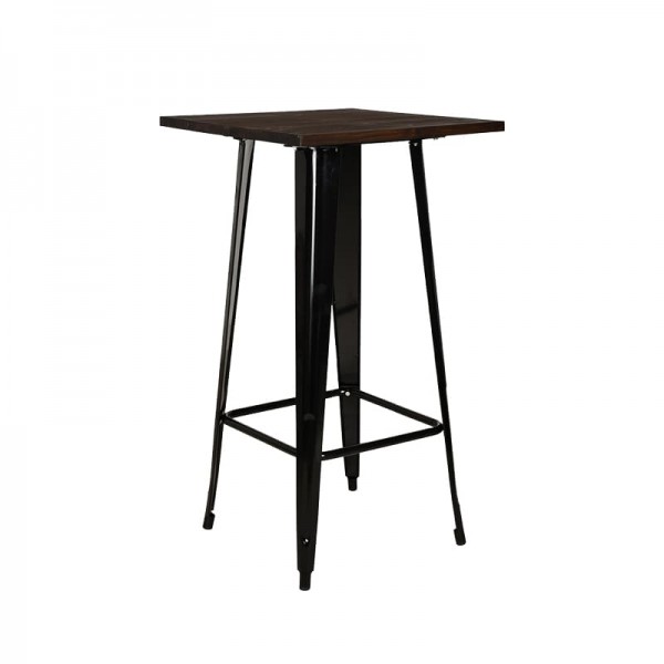 Mesa cuadrada, fabricada en estructura metálica y base sólida de madera con acabado texturizado.