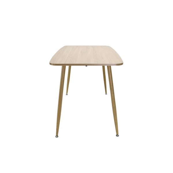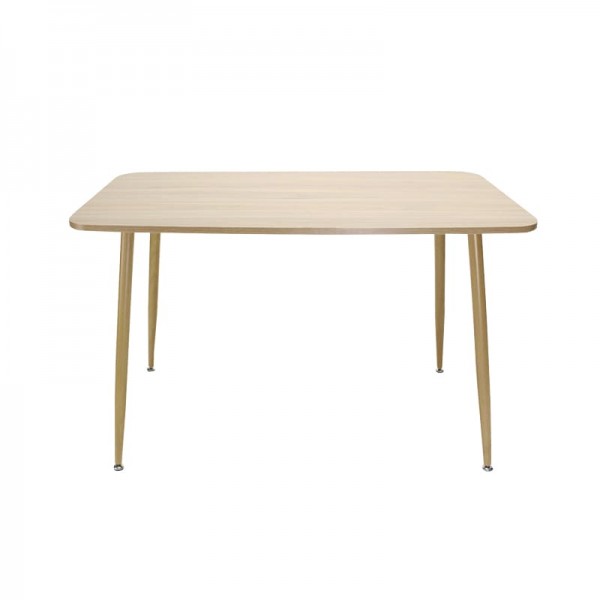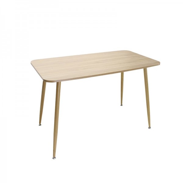Mesa rectangular con base metálica y cubierta de melamina fácil de limpiar y resistente a los arañazos.