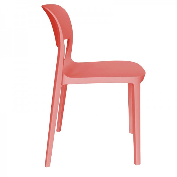 Silla realizada en una sola pieza en polipropileno de alta densidad, apilable.
