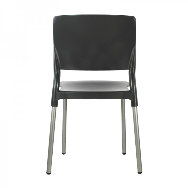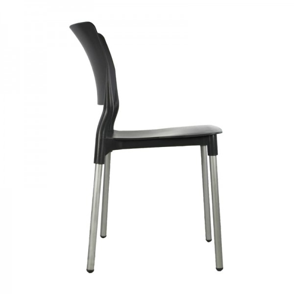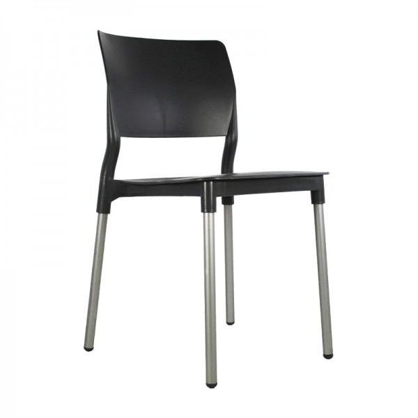 Silla con base de aluminio anodizado, asiento y respaldo de polipropileno.