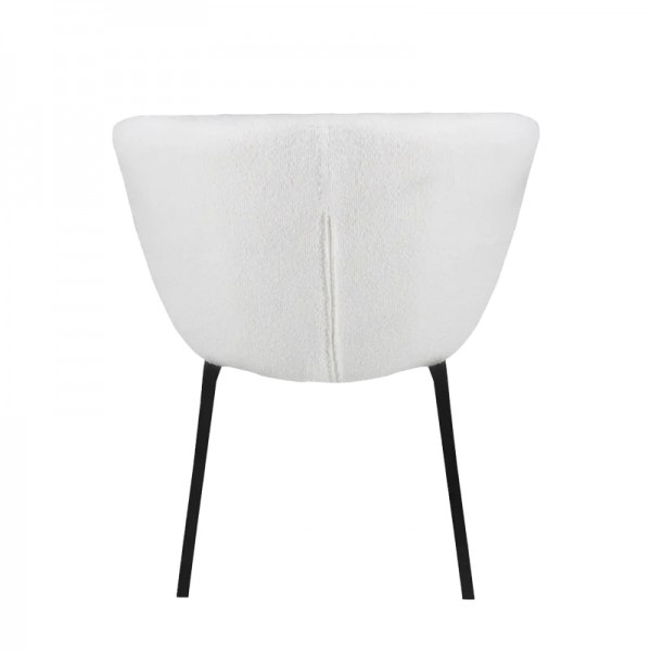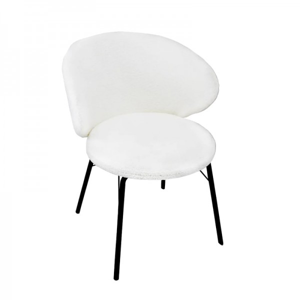 Silla con base de metal y asiento acojinado tapizado en tela tipo lana.