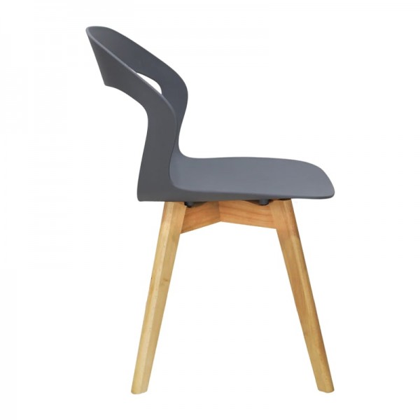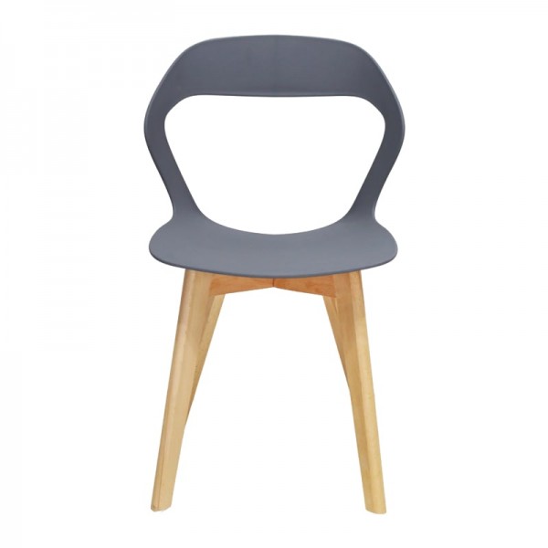 Silla con base de madera, asiento y respaldo de polipropileno.