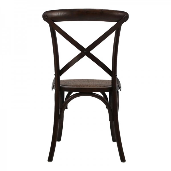 Silla con estructura de madera y respaldo de ratán natural.