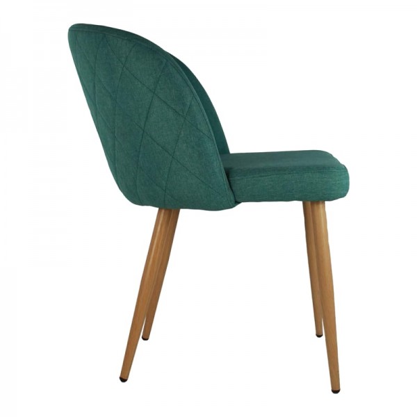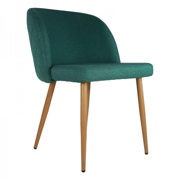 Silla con base metálica y asiento de madera con espuma confortable y tapizada en lino.