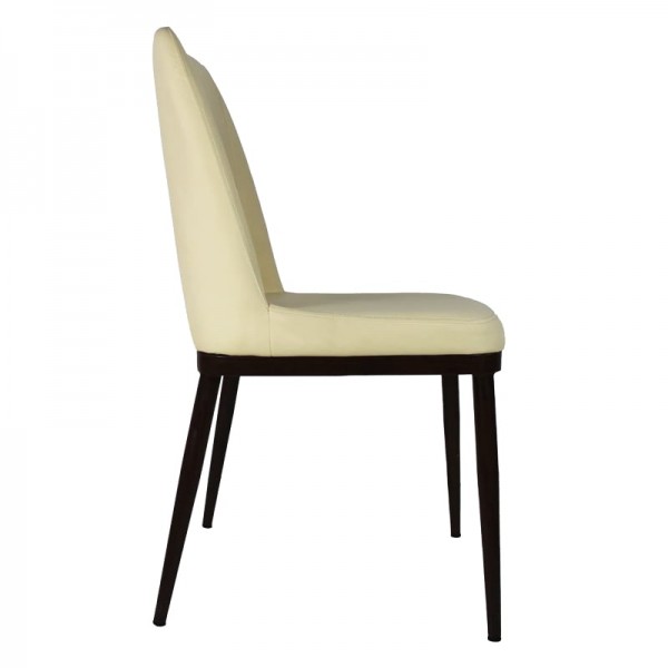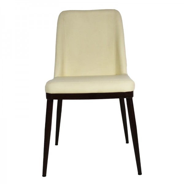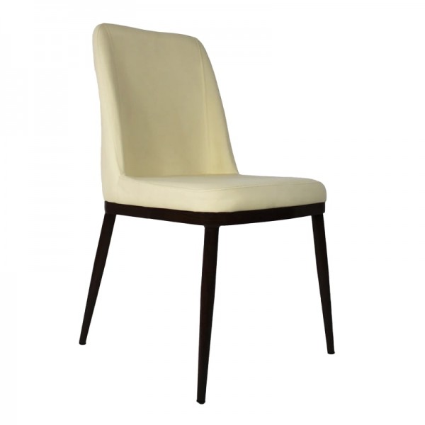 Silla con base de metal y asiento de madera con espuma confortable tapizada en vinil.