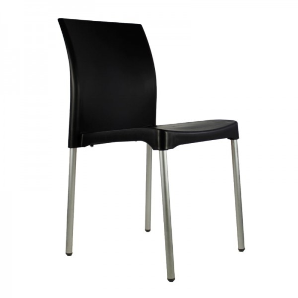 Silla con base de aluminio anodizado, asiento y respaldo de polipropileno.