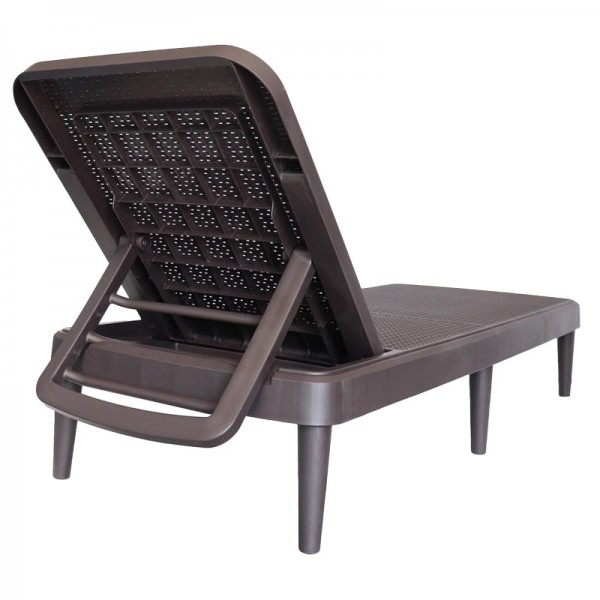 Camastro terminada en imitación mimbre, de una sola pieza en polipropileno de alta resistencia a los rayos uv y al ambiente salino. respaldo reclinable en 4 posiciones. Medidas: 63.5 x 153 x 88 cm Colores: Blanco, gris, café, negro, verde, amarillo