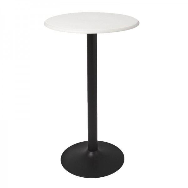 Mesa redonda con cubierta blanca en polipropileno de alta resistencia y duración. base redonda con pedestal de acero y pintura epóxica.