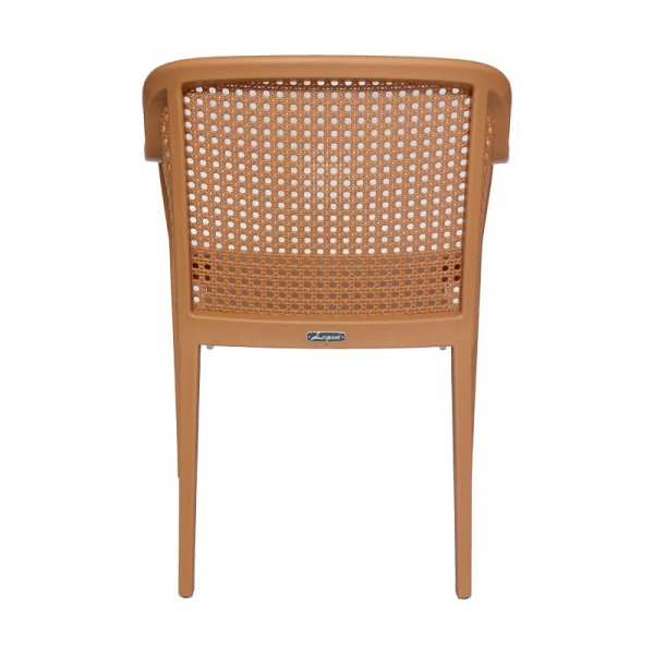 Silla terminada en imitación bejuco, de una sola pieza en polipropileno de alta resistencia a los rayos uv y al ambiente salino.