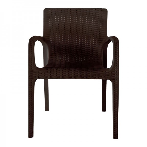 Silla para exterior e interior ideal para terrazas o áreas de cafetería, terminado en imitación mimbre de una sola pieza en polipropileno de alta resistencia a los rayos ultravioleta (uv) y al ambiente salino.
