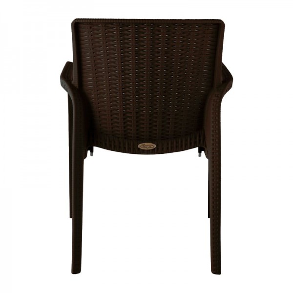 Silla para exterior e interior ideal para terrazas o áreas de cafetería, terminado en imitación mimbre de una sola pieza en polipropileno de alta resistencia a los rayos ultravioleta (uv) y al ambiente salino.