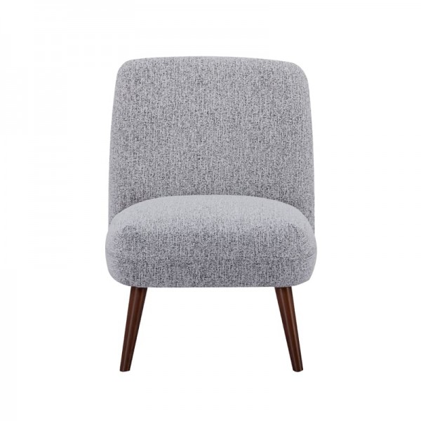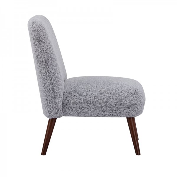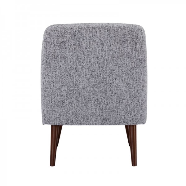 Sillón con respaldo ergonómico acolchado, base de madera natural robusta y estilizada, tapizado en tela