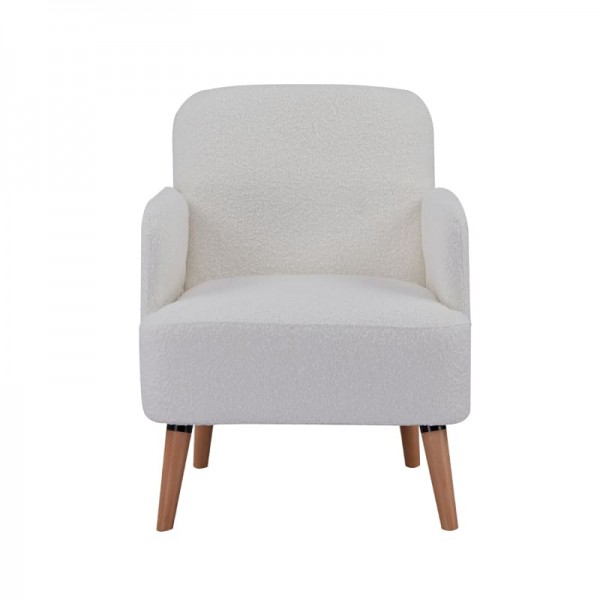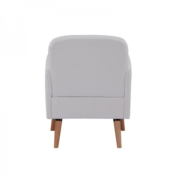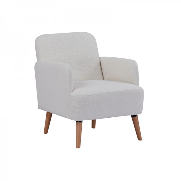 Sillón con base de madera, asiento y descansabrazos acolchados, respaldo ergonómico tapizado en tela