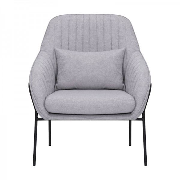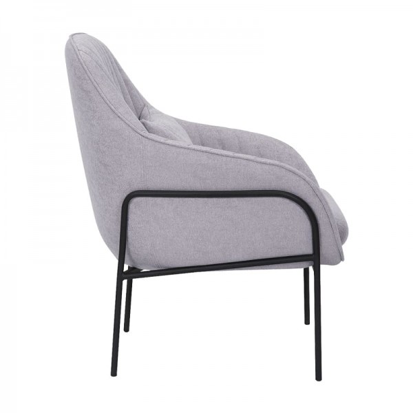 Sillón con estructura metálica, con reposabrazos acojinados y tapizado en tela de alta calidad