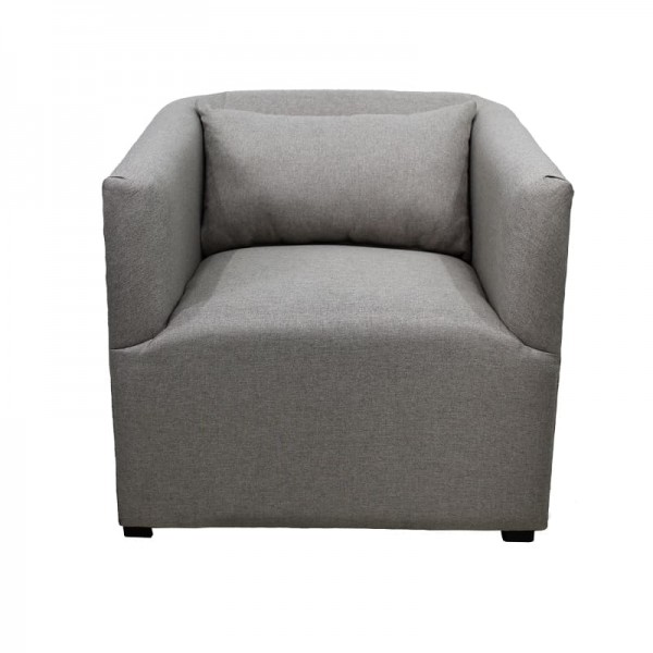 Sillón de estructura sólida, con reposabrazos acojinados y tapizado en tela de alta calidad