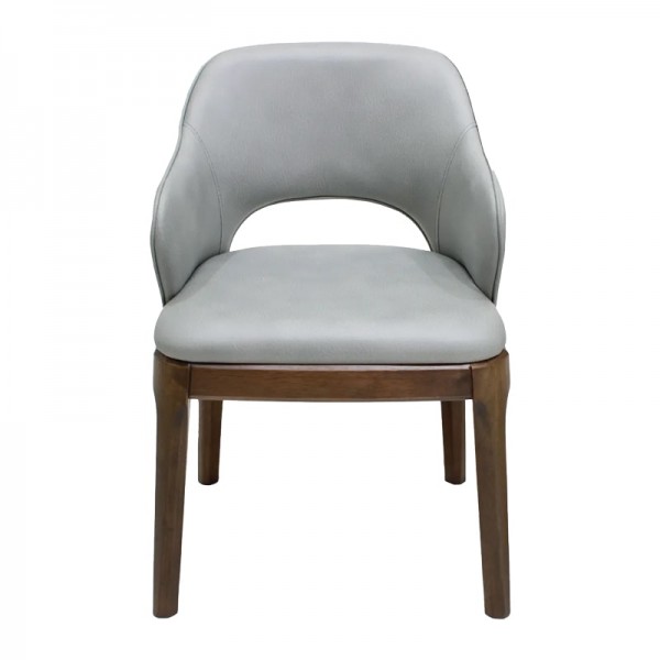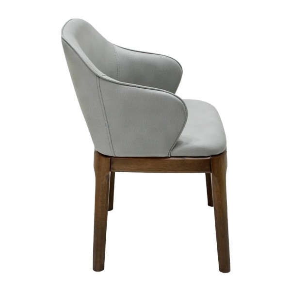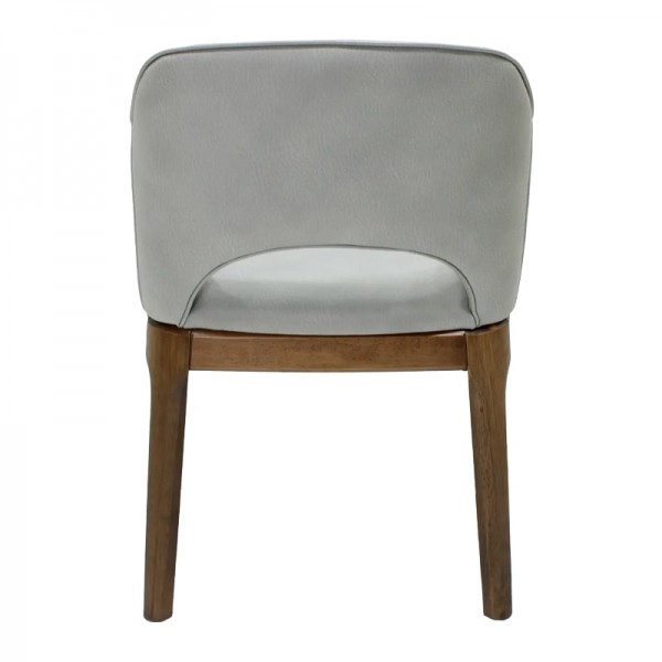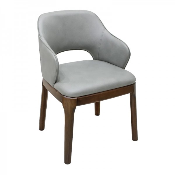 Silla con base de madera y asiento tapizado en tela tipo vinipiel.